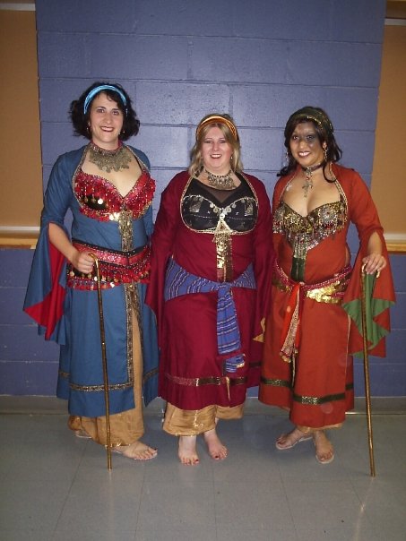 Here's a picture of my teacher Alexia (center) and my troupe mates Jen and Donna in their new Ghawazee coats.