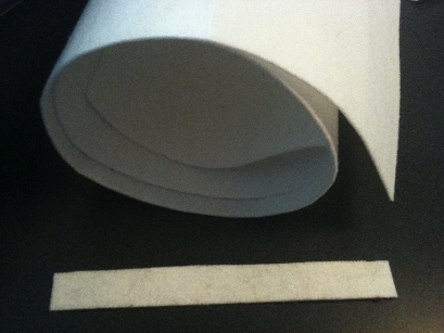 ~Interfacing: Super thick interfacing called "stabilizer" is the building block of belts, accessories, and sometimes bras. Interfacing comes in many thicknesses - from tissue paper thin to much stiffer. Technically speaking, stabilizer and interfacing are different products, but you'll always find stabilizer on the shelf labled "interfacing" in a fabric store, and stabilizer will simply look like a roll of the thickest interfacing you've ever seen (like 1/8" thick). Fusible (iron on) or non fusible are both fine, whatever is on sale. I never bother fusing it though. Typically, stabilizer is used to make a structure like a purse, whereas thinner interfacing adds stiffness like on a collar. If your local store doesn't carry the stabilizer you need, I suggest you buy it online here, and use a coupon. In the photo below I show the rest of a role I had, and the remainder of a strip I cut out to line a bra strap - the same width as my grosgrain ribbon.