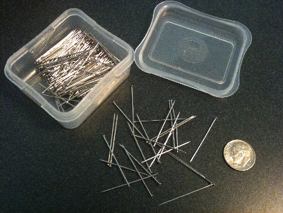 ~Straight Pins: Straight pins hold things in place while you are sewing them. They can even be used to mark a spot, like where you want your hook & eyes to be.
