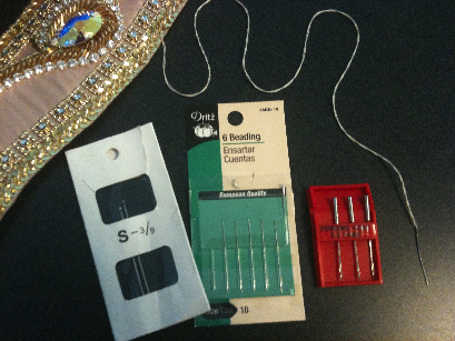 ~Sewing Needles: There are two major types of sewing needles - the ones for sewing machines, and the ones you use to sew by hand. Machine needles come in a variety of sizes, in the US ranging from 8 to 19 with the smallest number being the thinnest. Anything from size 10 - 14 is a good bet for the types of fabrics we deal with. Machine needles also come in a "stretch" version, which is just a sharper needle. For hand sewing needles, you'll need a strong one for sewing together the thick bases of your costumes, and a thin one for beading. They sell variety packs of needles, but the ones small enough for seed beads are usually not in there.